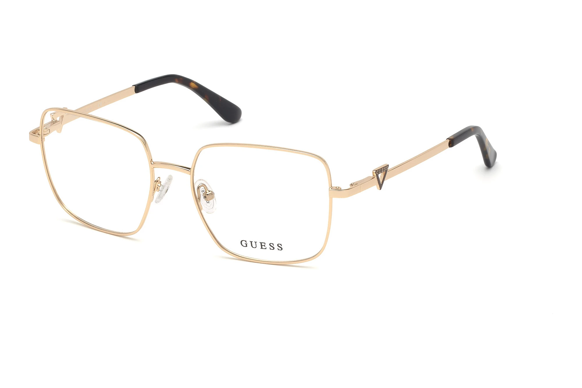 Med denna båge tilltalar designerna framförallt kvinnor som bor i storstadsmetropolerna – kanske för att träffa Mister Right, men huvudsakligen handlar det här huvudsakligen om den rätta looken för 2020. Glasögon är inne och därför är glasögon med helram särskilt populära. Bågar med helram är inte bara robusta utan av ytterst bra kvalité vilket syns och återspeglas i designen och val av material. Den fyrkantiga bågen är en klassiker i form som uttrycksstarkt fokuserar på en rakryggad personlighet. Guld är absolut trendigt år 2020. Dessa Guess tillför det lilla extra för varje outfit. Guld passar speciellt bra till mörkare hy.