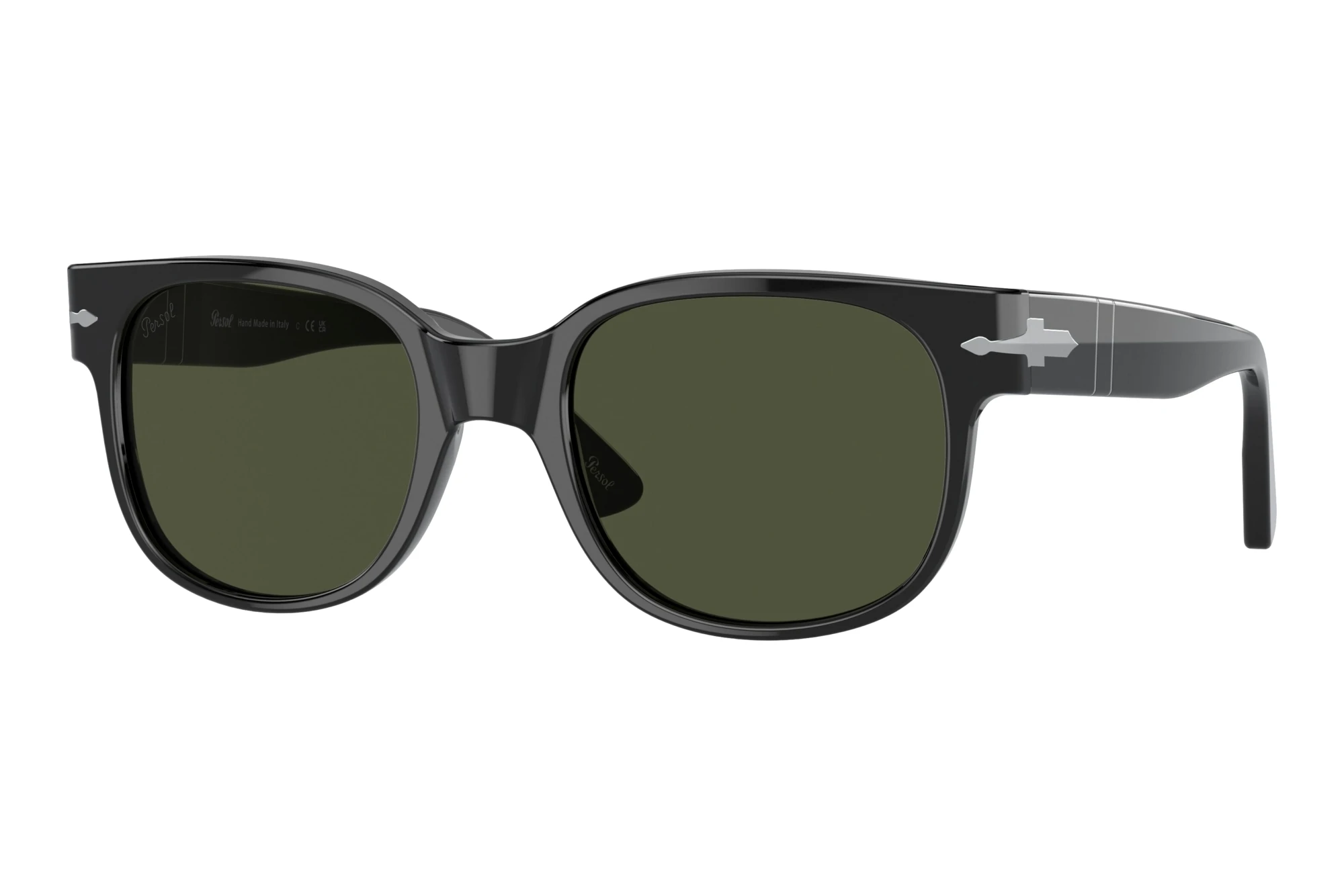 Modellen av Persol är en så kallad multitalang och passar både kvinnor och män. Med denna helram är glasen komplett infattade. Den som är övertygad om att bära glasögon är det rätta kommer endast i undantagsfall ta till andra alternativ. Den fyrkantiga formen skapar en tydligare ansiktsform och är därför det perfekta stilelementet för självsäkra personligheter. Plast är ett väldigt lätt och flexibelt material som håller länge och för med sig en hög komfort. Svart tillhör de absoluta klassikerna. Du kan kombinera svart till varje outfit samtidigt som svart utstrålar elegans. Gröna glas påverkar färgerna endast lätt. Därför är de speciellt lämpliga i trafiken och även annars, när det gäller att hålla kontroll. Även funktionellt sett är du här på den säkra sidan. Med ett 100 % UV-skydd för dina ögon kan vi låta solen skina.