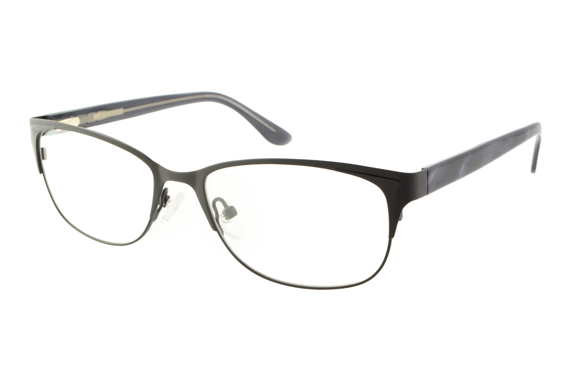 Med denna båge tilltalar designerna framförallt kvinnor som bor i storstadsmetropolerna – kanske för att träffa Mister Right, men huvudsakligen handlar det här huvudsakligen om den rätta looken för 2020. Halvramsglasögon innebär en betonad lätthet som passar i olika sammanhang och med olika klädstilar. Formen påminner om en upp och nedvänd trapets. Medan den övre delen av bågramen är bredare blir sidorna smalare nertill. Detta gör att ansiktet verkar mjukare. Svart tillhör de absoluta klassikerna. Du kan kombinera svart till varje outfit samtidigt som svart utstrålar elegans.